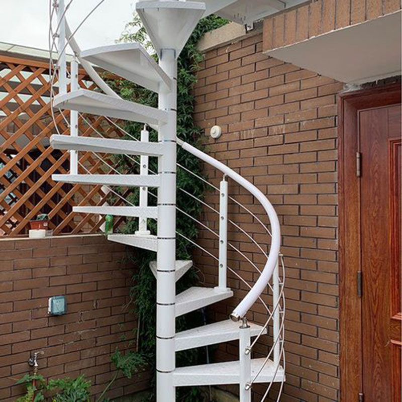 現澆樓梯大家都很熟悉,比較傳統,但是現在很多家庭做現澆樓梯比較多,朋友和爸爸都沒見過這樣的鋼結構旋轉樓梯,所以強烈反對。但是,由于是室外搭建樓梯,建議做旋轉樓梯。